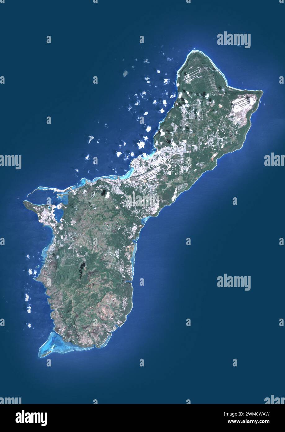 Satellite imagery of the island of Guam showing the locations of