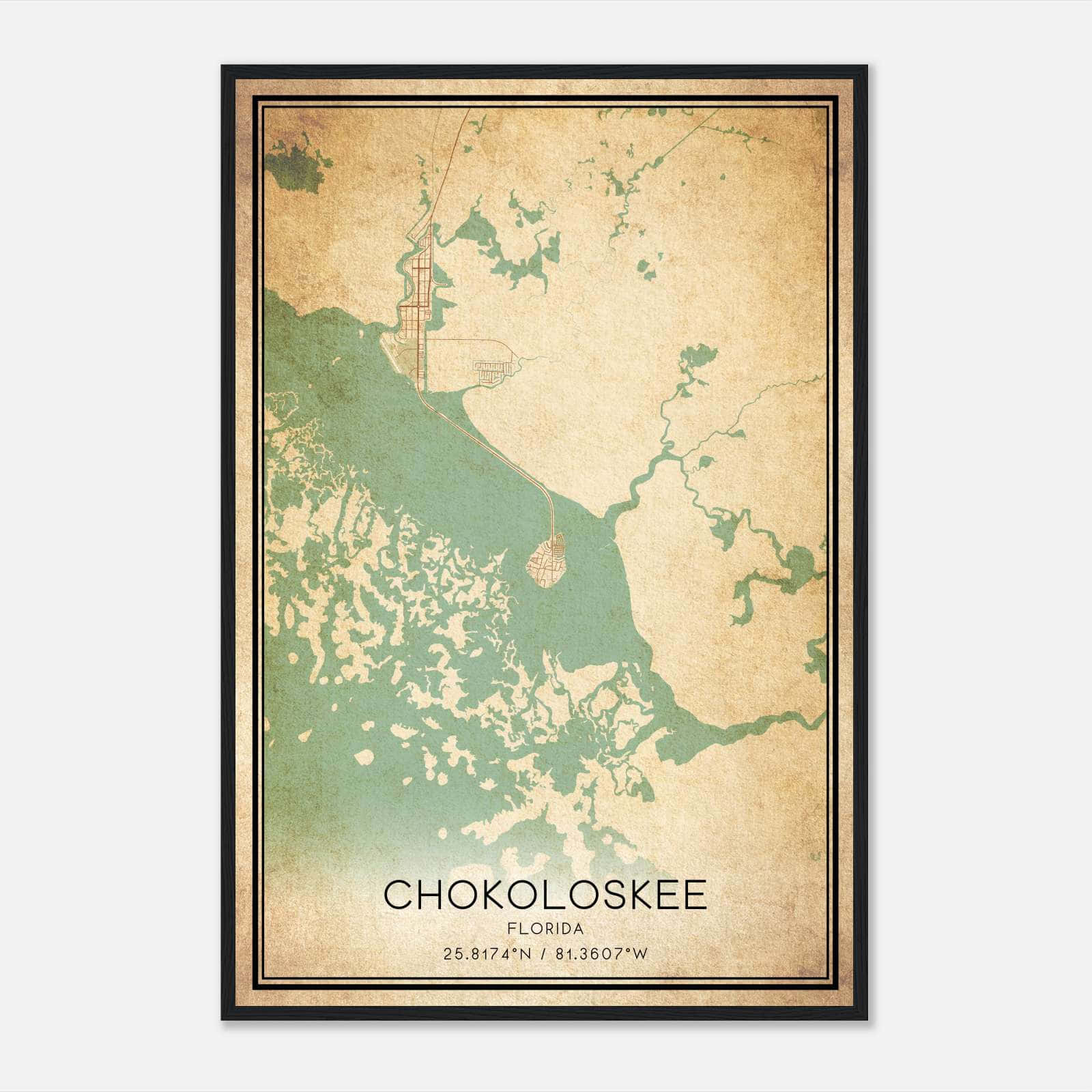 Vintage Chokoloskee Florida Map Poster, Chokoloskee FL City Road