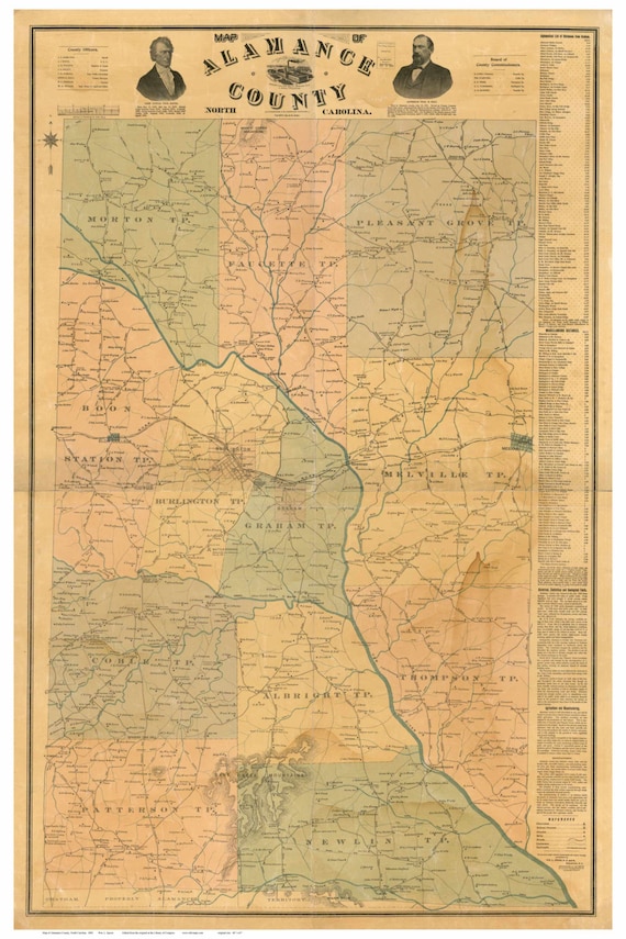 Condado de Alamance Carolina del Norte 1893 Mapa de pared antigua