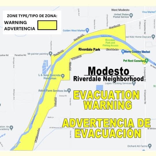 Modesto area evacuation order near river over flooding concerns