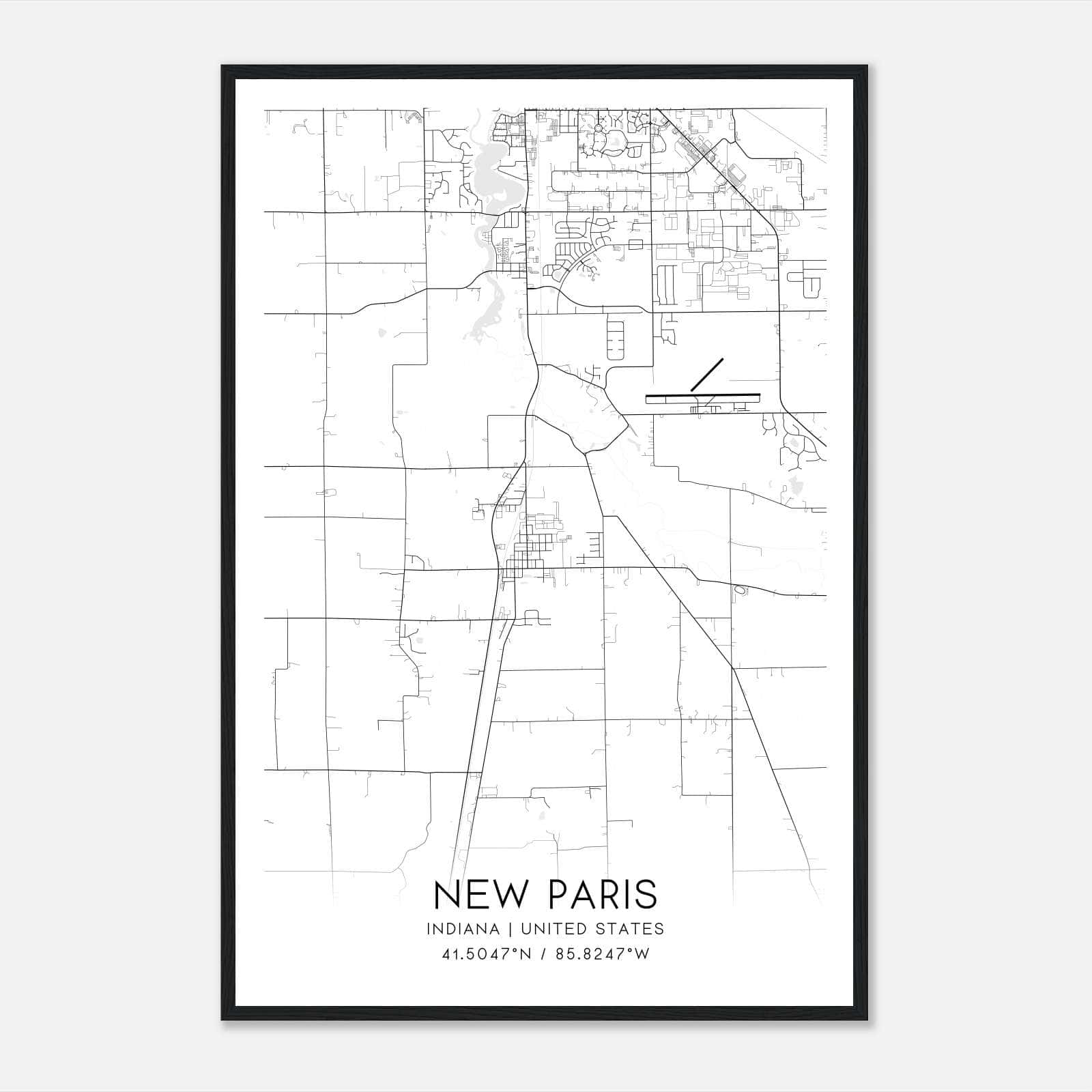 New Paris Indiana Map Poster, Modern Home Decor Wall Art Print