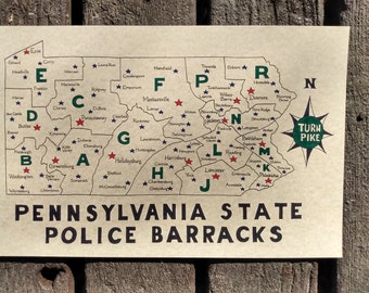 Pennsylvania State Police Barracks Map Etsy Hong Kong
