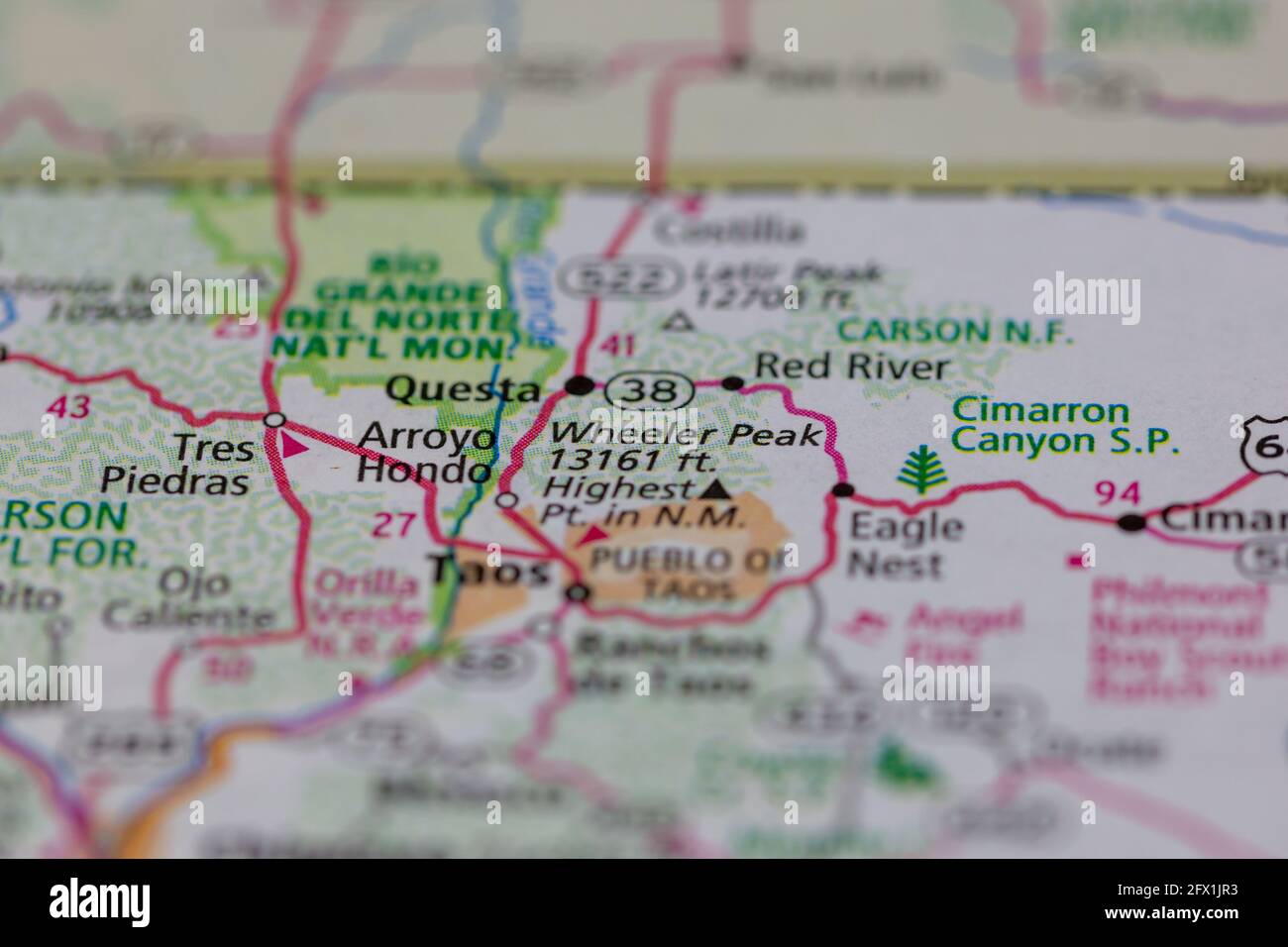 Wheeler Peak New Mexico USA shown on a Geography map or road ma